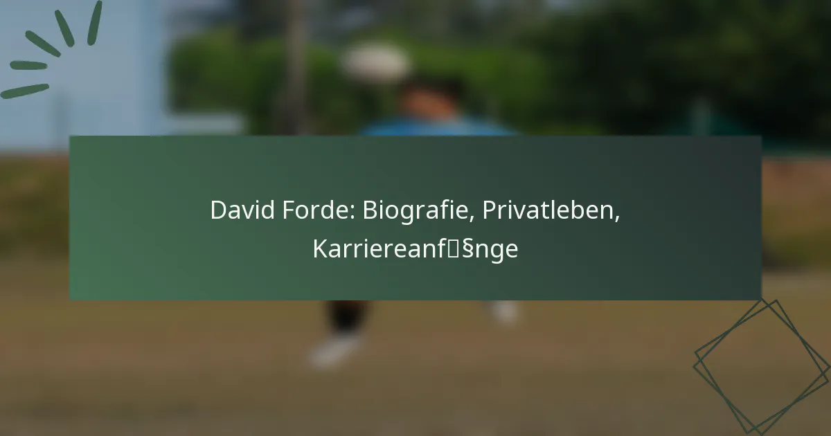 David Forde ist ein ehemaliger professioneller Fußballspieler aus Irland, der für seine Rolle als Torwart während einer Karriere, die über ein Jahrzehnt dauerte, gefeiert wird. Sein Weg in den professionellen Fußball war geprägt von frühen Erfahrungen und Trainings, die seinen Pfad formten, während sein Privatleben ein starkes Engagement für Familie und Gemeinschaftsarbeit zeigt.